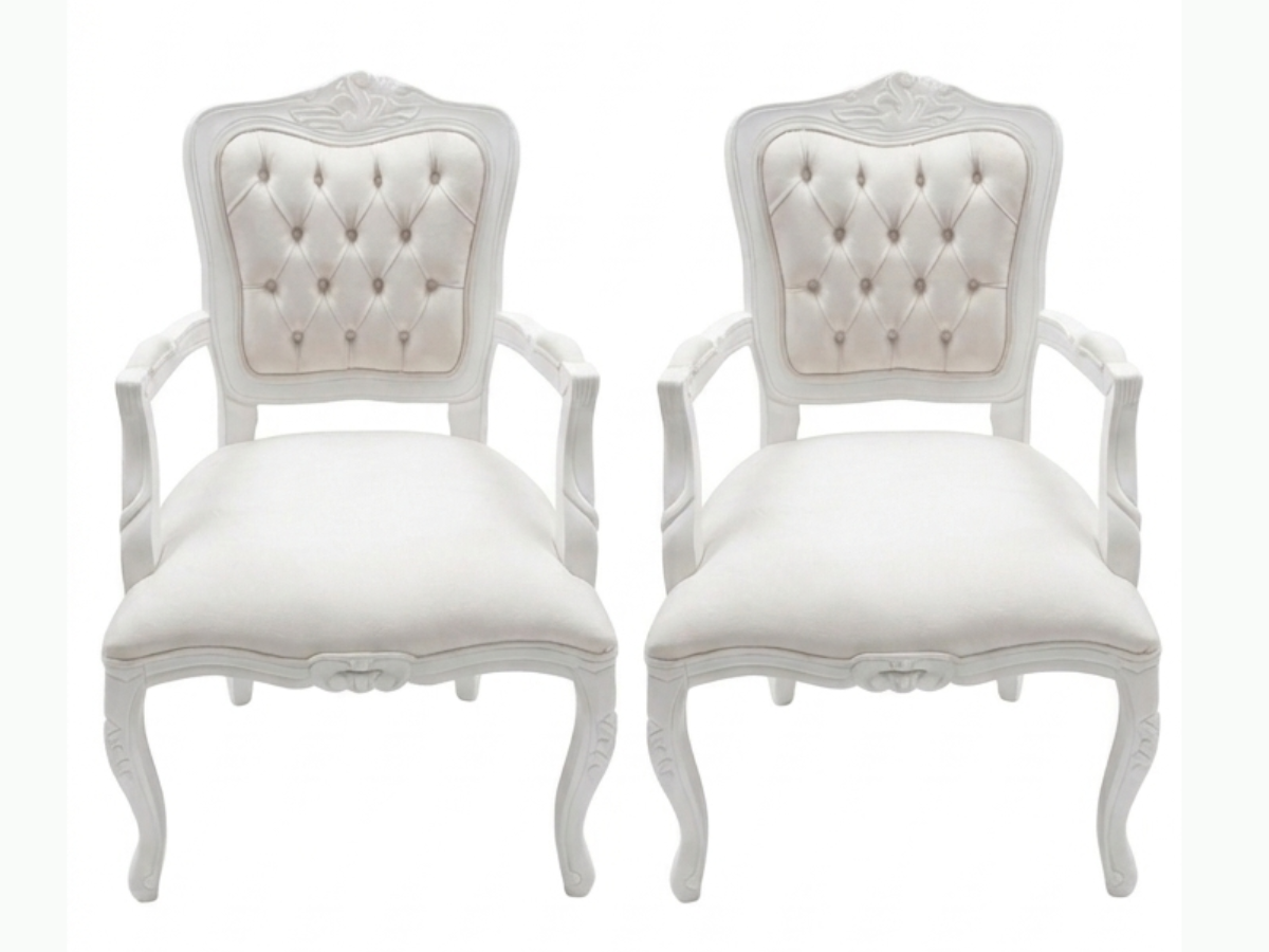 Acabamento em branco/off white que harmoniza com variados estilos de decoração Estas cadeiras são produzidas com atenção aos detalhes que caracterizam o clássico estilo Luiz XV, mesclando riqueza decorativa e conforto. A madeira maciça oferece solidez, enquanto o revestimento em suede tem toque suave e aspecto refinado. Ideal para sala de estar, jantar ou espaço de leitura, este conjunto traz funcionalidade e charme ao ambiente.